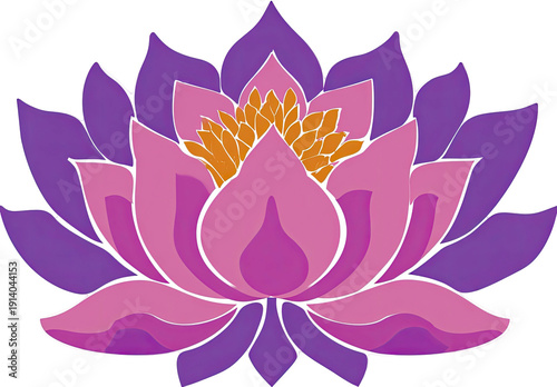 Digitally created vibrant, multi-layered stylized lotus flower illustration on a black background