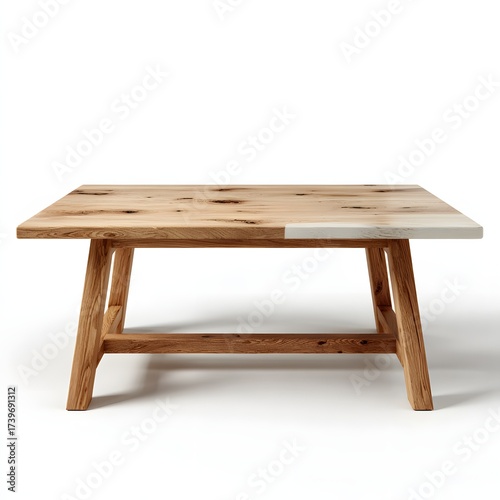 Dining table front view wooden design isolated white