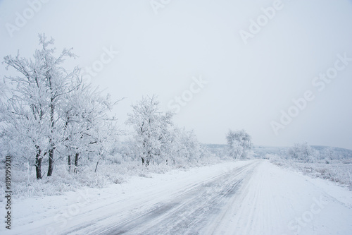 Dirt road in the forest in winter