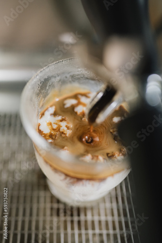 Dirty coffee by the espresso machine