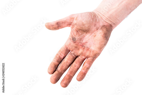 Dirty hand isolated on white background.