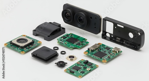 Disassembled electronic components isolated flatlay