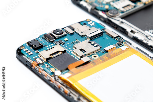 Disassembled smartphones isolated on a white background. Smartphone service concept.