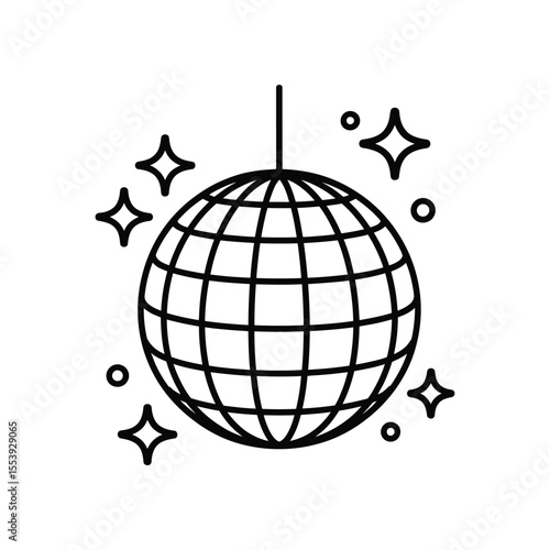 Disco Ball Line Art Icon with Sparkles Party Celebration Dance Vector
