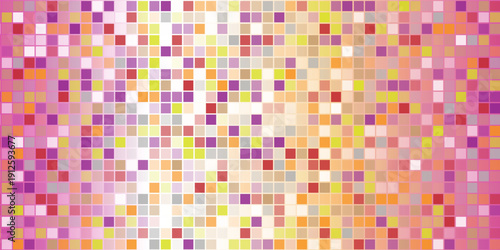 Disco ball mosaic pattern - abstract orange glowing square tiles background. Bright shiny glitter effect, sparkling digital pixelated texture. vector illustration. eps 10