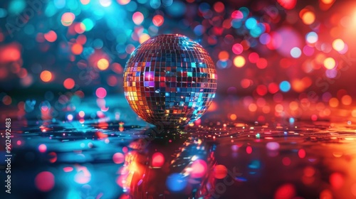 Disco Ball with Red and Blue Bokeh Lights