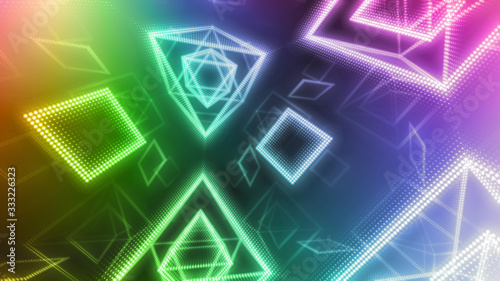Disco club space illumination neon light room floor wall 3D illustration abstract background