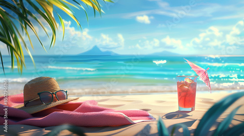 disfrutando las vacaciones de verano al aire libre en el mar acostado en la arena viendo el paisaje un dia tropical caluroso fondo de playa con espacio para copiar