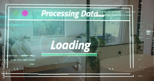 Displaying AR HUD overlay covering modern apartment interior, showing Processing Data Loading bar