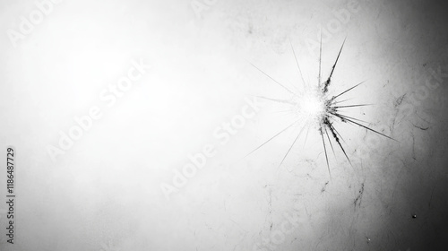 Distorted radial cracks fragmenting frosted glass surface, creating minimalist high-key visual texture with negative space