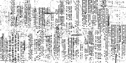 Distressed black texture. Dark grainy texture on white background. Pixel city view grunge wall texture