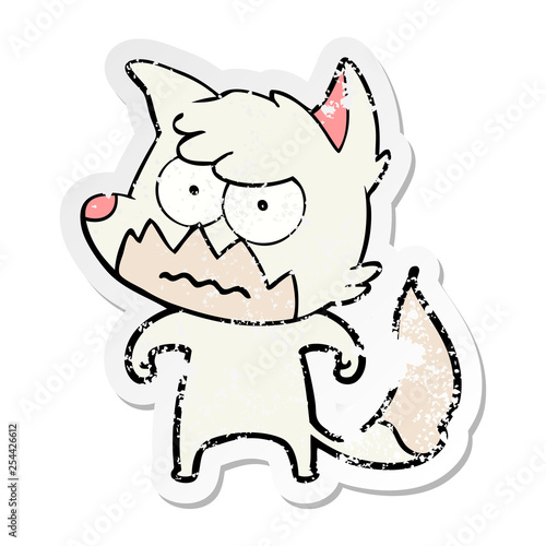 distressed sticker of a cartoon annoyed fox