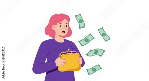 Distressed woman with a near-empty wallet experiencing financial difficulties