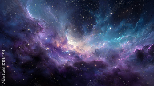 Dive into a vibrant nebula, a stunning cosmic cloudscape where stars ignite and colors swirl, perfect for space exploration and science fiction themes