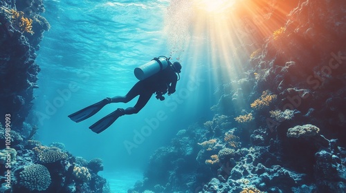 Diver exploring the serene underwater world with scuba gear in bright blue waters