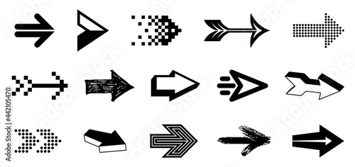 Diverse arrow cursors vector set, different shapes styles and concepts arrows single color monochrome graphic design elements for icons or logos.