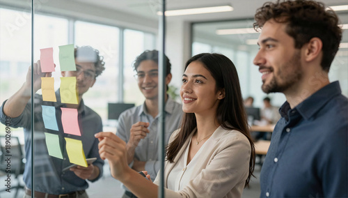 Diverse Business Team Collaborating in Modern Glass Office Meeting