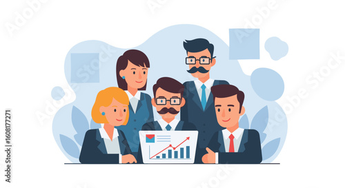 Diverse business team reviewing positive growth chart - perfect for landing pages, presentations, and brochures.