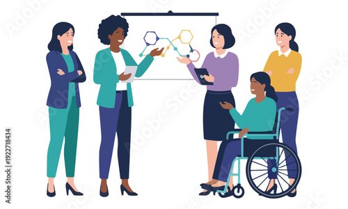 Diverse Businesswomen Team Collaborating on Whiteboard Presentation
