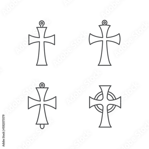 Diverse Christian Cross Symbols Collection, Religious Iconography Set Vector Illustration