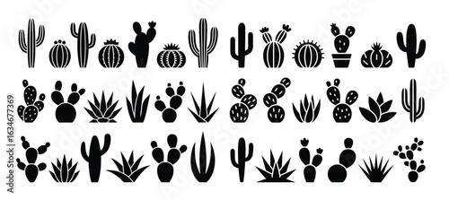 Diverse collection of stylized cactus and succulent plant silhouettes for desert-themed designs