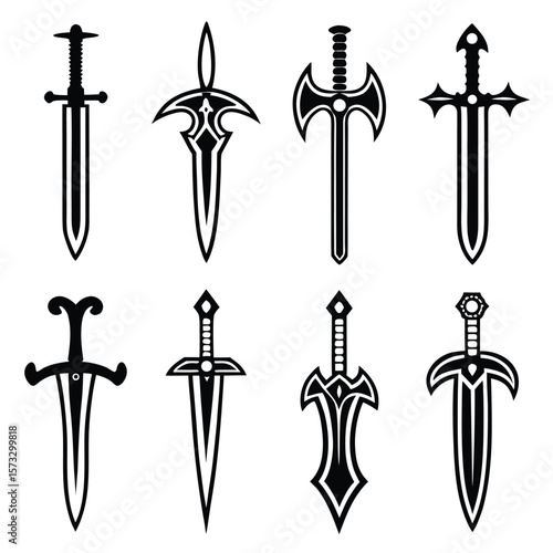 Diverse collection of stylized medieval swords weapon