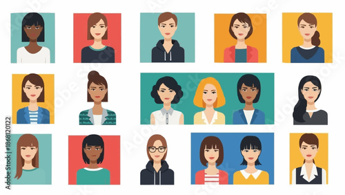 Diverse Collection of Womens Avatar Portraits for Professional Use.