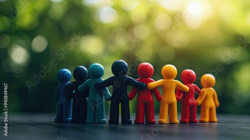 Diverse figures stand united in a vibrant natural setting, symbolizing community, teamwork, and collaboration.