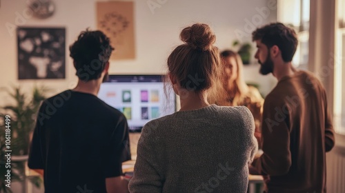 Diverse Group Collaborating on a Digital Project in a Cozy Home Office