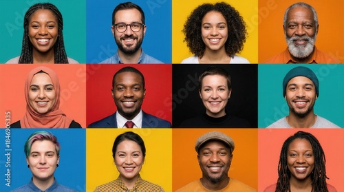 Diverse group of smiling people in a grid, representing unity and different backgrounds