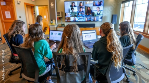 Diverse Group of Students Focused in in a virtual STEM conference