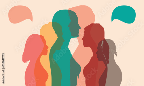 Diverse groups of people talking on a profile. Multiethnic dialogue. Crowd speaking. Communication concept. Social networking.