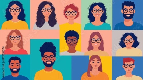 Diverse Inclusive Community Faces Multicultural Modern Art Illustration