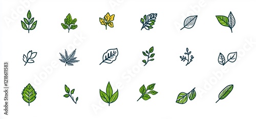 Diverse leaf icons; nature, botany, design