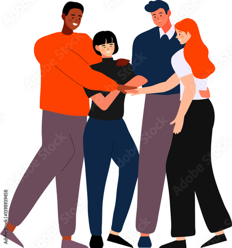 Diverse people join hands support together and success teamwork illustration