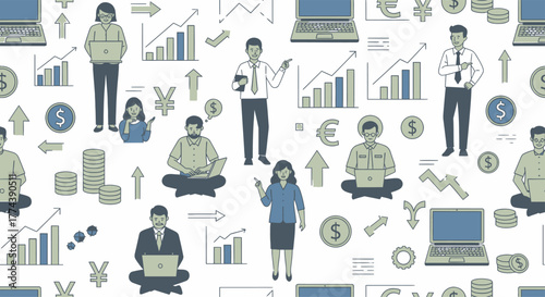 Diverse Professionals and Financial Growth Seamless Pattern.