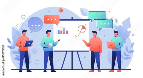 Diverse team brainstorming in Corporate Memphis style