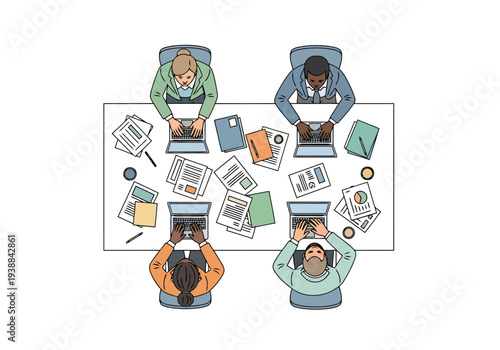 Diverse Team Collaborating Working Together Around a Table with Laptops and Documents
