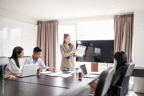 Diversity Woman leadership asian business people training Teamwork meeting asian employees working together colleagues
