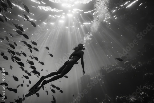 Diving with fish in the ocean