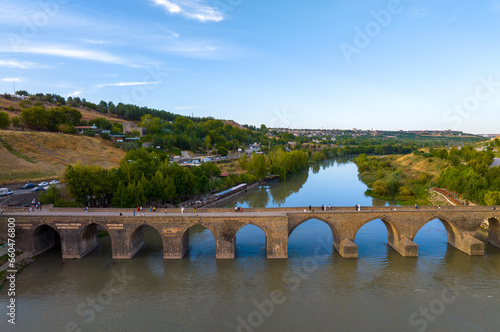 Diyarbakir, Turkey historic ten-eyed bridge view (on gozlu kopru)