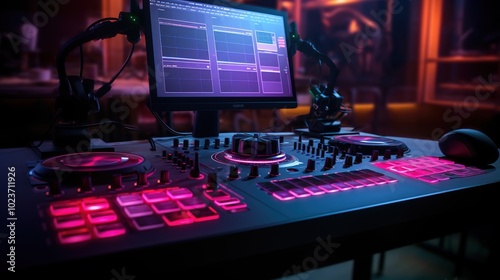 DJ mixer controller panel for electronic music in night club