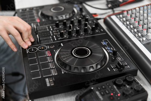 DJ remote control. Dj audio controller. Electronic turntable.