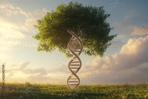 DNA helix tree sunset nature scene