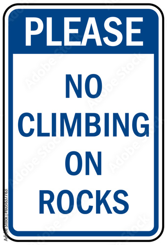 Do not climb warning sign and labels no climbing on rocks