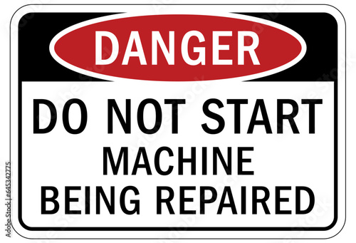 Do not operate machinery sign and labels do not start, machine being repaired