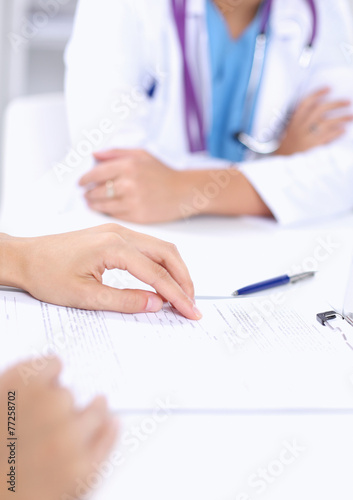 Doctor and patient sitting on the desk at office