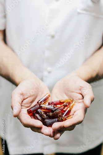 Doctor in white uniform holding ampoules
