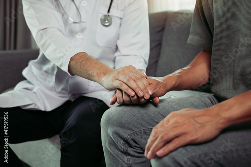 Doctor is holding the hand of the patient by giving him confidence in the doctor.