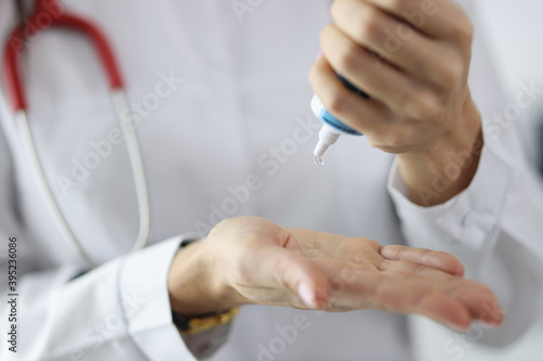 Doctor squeezes gel from tube onto hand. Medical ultrasound gel concept